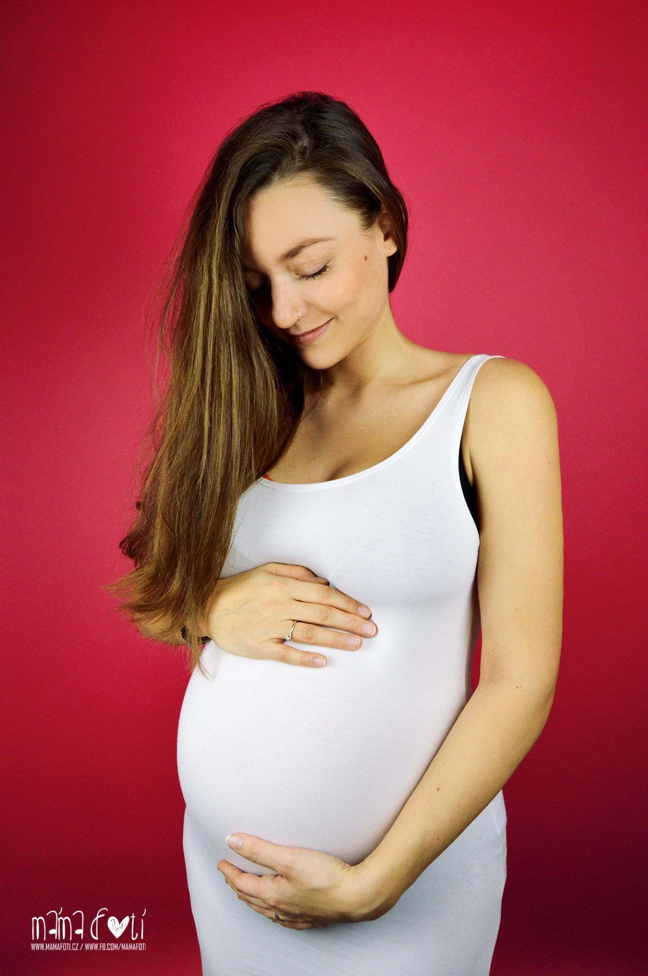Veronika Ferencová: "Vzhledem k mé velice stydlivé a spíše introvertní povaze, by mne nikdy nenapadlo nechat se vyfotit - těhotná, netěhotná, oblečená, polonahá... I klasické rodinné focení nemůžu vystát. Pak jsem ale viděla jednu z nejhezčích těhotenských fotek. Fotila ji Monika - má spolužačka ze střední. Musela jsem jí fotku pochválit. A tím se to všechno spustilo. Monika mi navrhla, abych se také dala vyfotit, pár kamarádek v okolí se na těhotenské focení také chystalo, do toho hormony nebo co a navíc blížící se výročí s partnerem, to vše rozhodlo a já svůj stud překonala. A nelituji! Focení s Monikou bylo moc fajn, bezprostřední a v pohodě. Klidně bych to zase někdy zopakovala. A když jsem pak viděla výsledek! Úžasný! Mohu všem jen doporučit!"